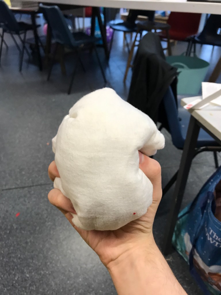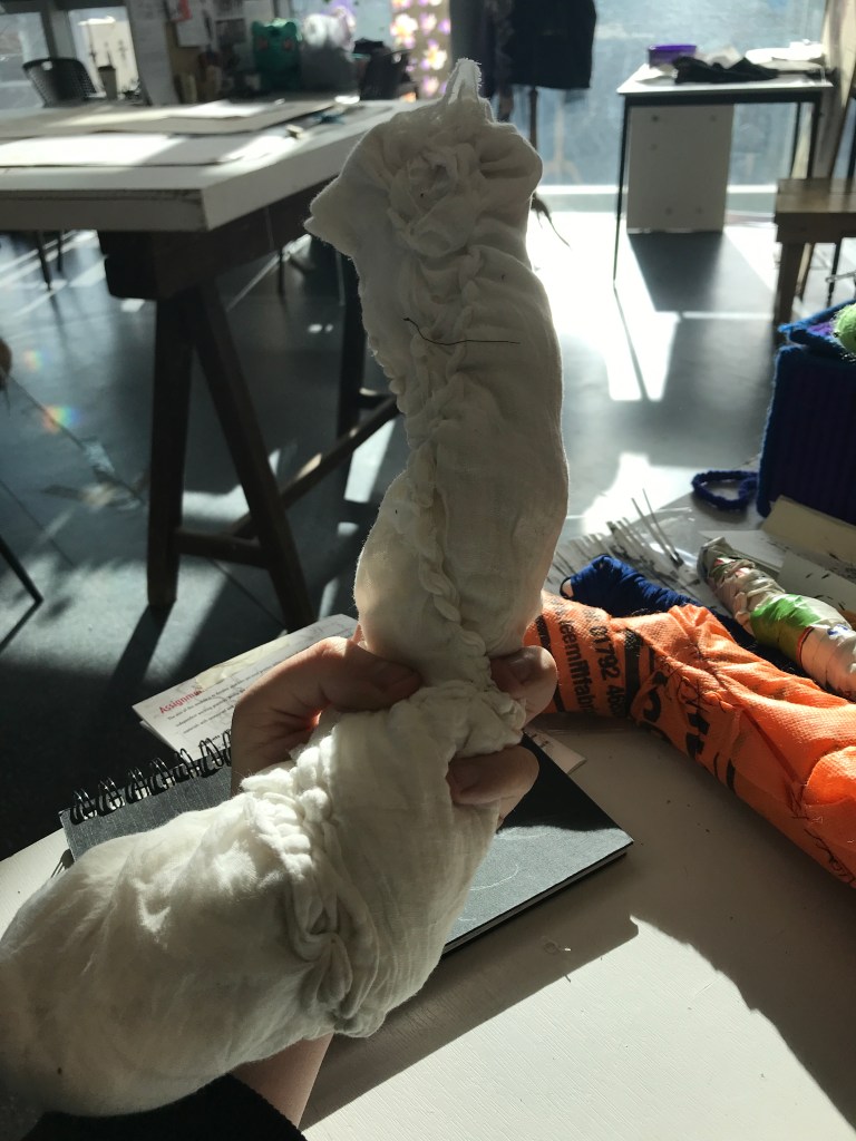 Once all the setup and sketches for how I wanted to go about and start the project, I began experimenting with different fabrics and materials to create strange but intriguing objects that have different textures when comparing the insides to their outsides. This experimentation process allowed me to consider the use of textiles and various textures to bring together a new method of creation when it comes to my work.