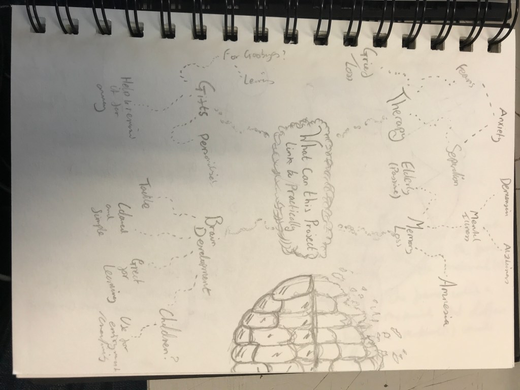 After figuring out what R’s I would be using to start my project, I decided to roughly design 3 different pathways of where I could see the project itself going as well as a mind map of what practical uses my project can possess if made successfully such as therapeutic and brain development uses.
