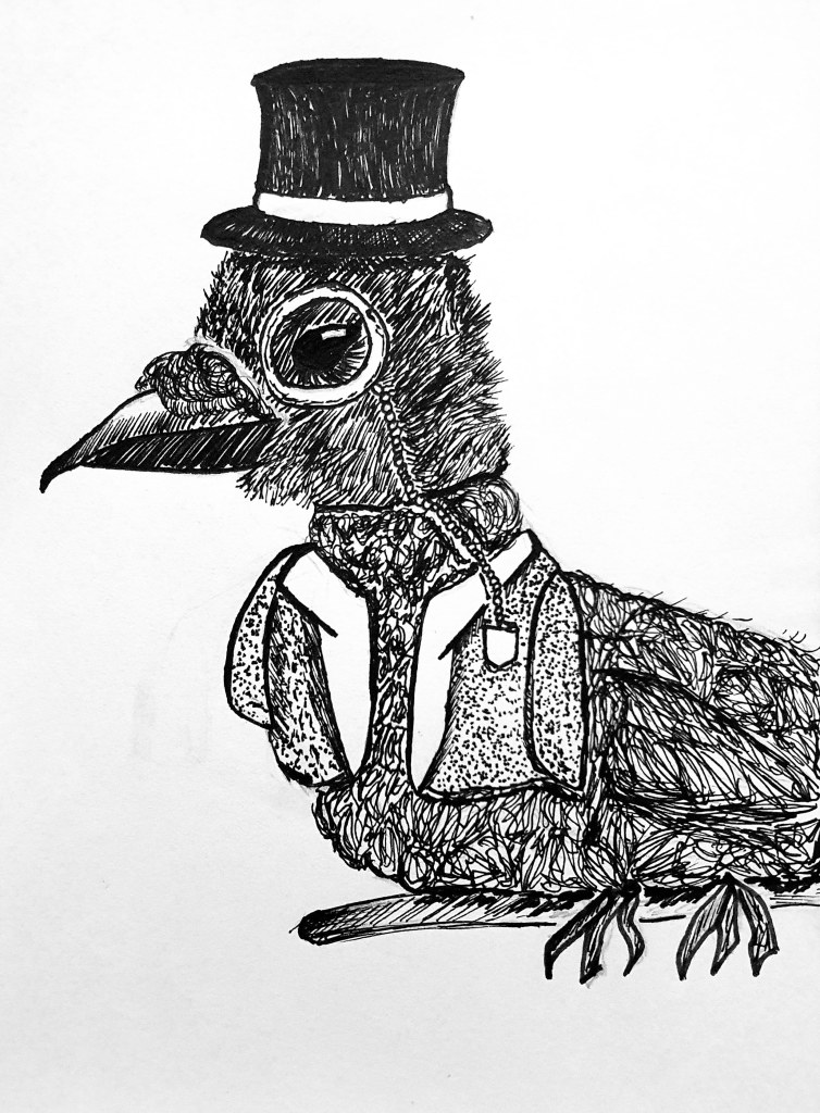 Meet Reginald VII, a raven born into royalty! He takes his presence and looks very seriously, even though he insists he didn’t steal his clothes from a teddy bear.
