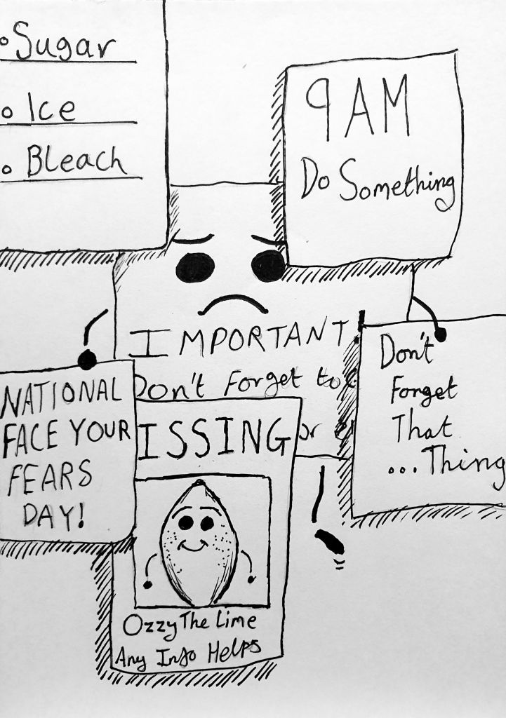 Meet Lucy. She’s in a bit of a pickle at the moment, stuck behind all these useless reminders plastered on the fridge. Hopefully, some of them fall off in time!