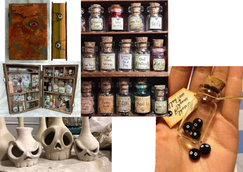 - Travelling Witch who keeps spells and components to sell in a large hollowed-out spell book