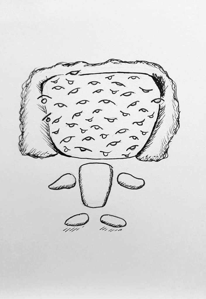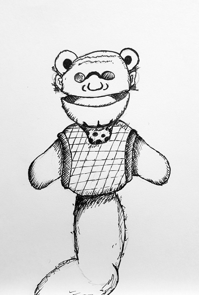 When going about everyday tasks, I tend to deviate off course and find myself procrastinating either creatively or pointlessly. To help aid my concentration in sticking to my train of thought, I like to assign a narrator when looking through notes and research as a way to engage in the text as well as add an extra layer of perception in case I miss any details. This narrator is usually a stoic posh gentleman with a striking voice resembling the likes of David Attenborough or Morgan Freeman, but whenever I tried to visualise the face behind the voice my brain just couldn’t create it in a human form. So rather than randomly sketch a person that I didn’t perceive, I personified this narrator in the way I perceived them to be, which ended up being a half bodied felt muppet with tiny reading glasses and eye placement that was far from anatomically correct.