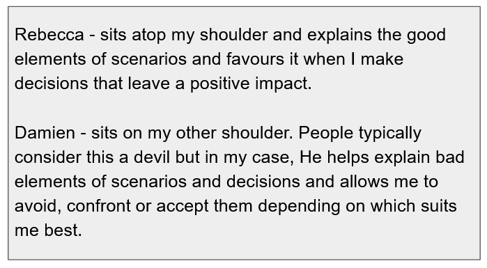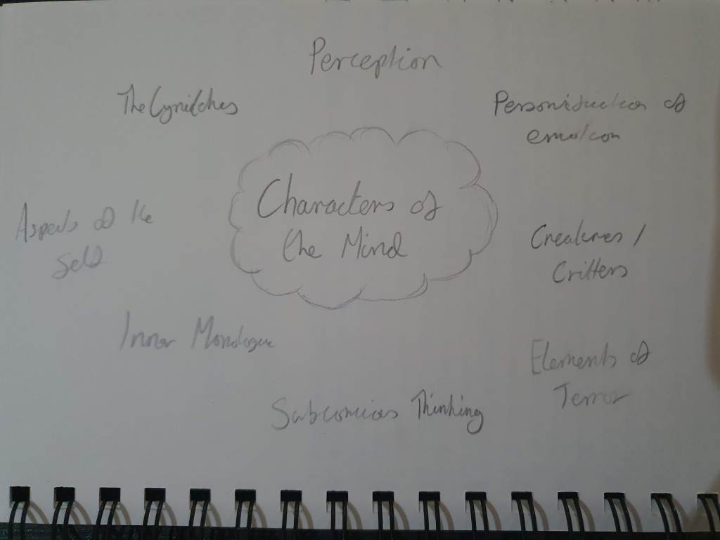 Through the use of this technique, I discovered that a lot of the concepts I was coming up with were based around characters and turning aspects of the mind into their own personas. With this in mind, I decided that the next course of action was to create my thought experiment centred around analysing the quirks of my brain and characterising them.