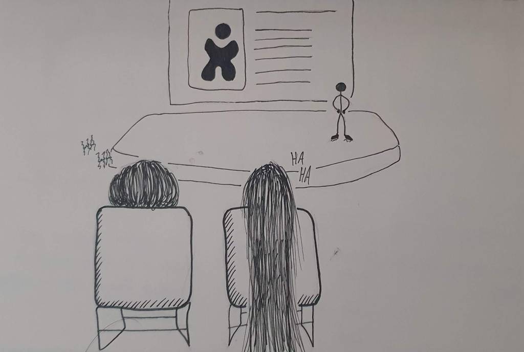 After all my characters were planned out and drawn, the only thing left standing to complete was the end-of-project presentation known as the Pecha Kucha. To be frank, this part of the project started a cycle of negative effects that was hard to climb out of. As an autistic person, I tend to struggle with presenting due to reasons I have previously mentioned and turned into characters. However, this aspect was also combined with a concept I had never tackled which I like to call “Performative Thinking”. Therefore, combining the thought of presenting as well as creating some form of performance that would showcase my work rather than showcasing my work, caused me to shut down and spiral to the point where every time I even tried to think of concepts for this part of the module, I would be out of commission for a few days due to how severe the shutdowns would get. It got to the point where during one of my brainstorming sessions, I was so shut down that I was pressing my thumbs to the bone around my eye sockets and thinking about tearing my skull in half as that feat sounded more desirable than this.