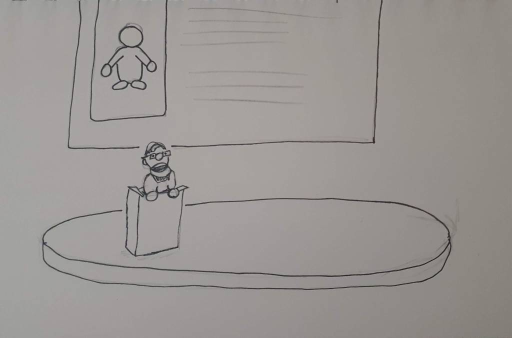The final concept I had imagined when thinking about the presentation is a concept I would never want to actually do in reality. Since being the focal point is already a stressful experience, having to perform as a puppeteer and project my words through it is by far a more distressing thought. As much as I would have loved to have made a puppet and used it for a final presentation like this. If I ever wanted it to become a reality I would have had to have someone else portray the puppet in this scenario. Basically, this concept is centred around the use of the puppet and having them carry out the presentation rather than myself, using their stoic soothing voice to explain each character in extenuated detail to the point where hopefully someone falls asleep.