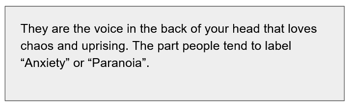 Where most people have guardian angels that help dictate moral decisions based on good or evil, the guardians that sit on my shoulders do something a little different. When it comes to difficult scenarios/tasks, each guardian is tasked to showcase both the good and bad elements of what I have to face and allow me to perceive the best ways to the challenges ahead of me. Their goals are to make sure I see all potential pathways and choose the lane that will not lead me to shutting down.