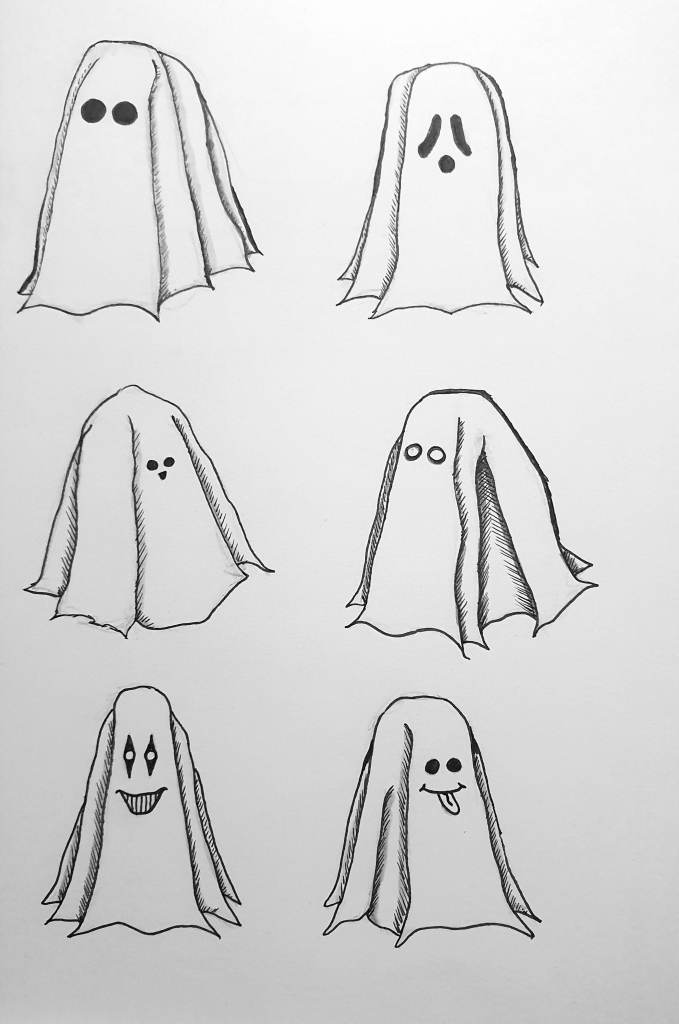 From looking through an assortment of these artists’ works, I found myself mostly drawn to pieces made by Marc Bourlier due to their use of simplistic facial expressions and how every face can be unique depending on their shape or material. With this in mind, I knew that when it came to my own making I wanted the faces on the ghosts to have varying degrees of expression but also be simplistic and fun to look at rather than complexly designed and overcomplicated.