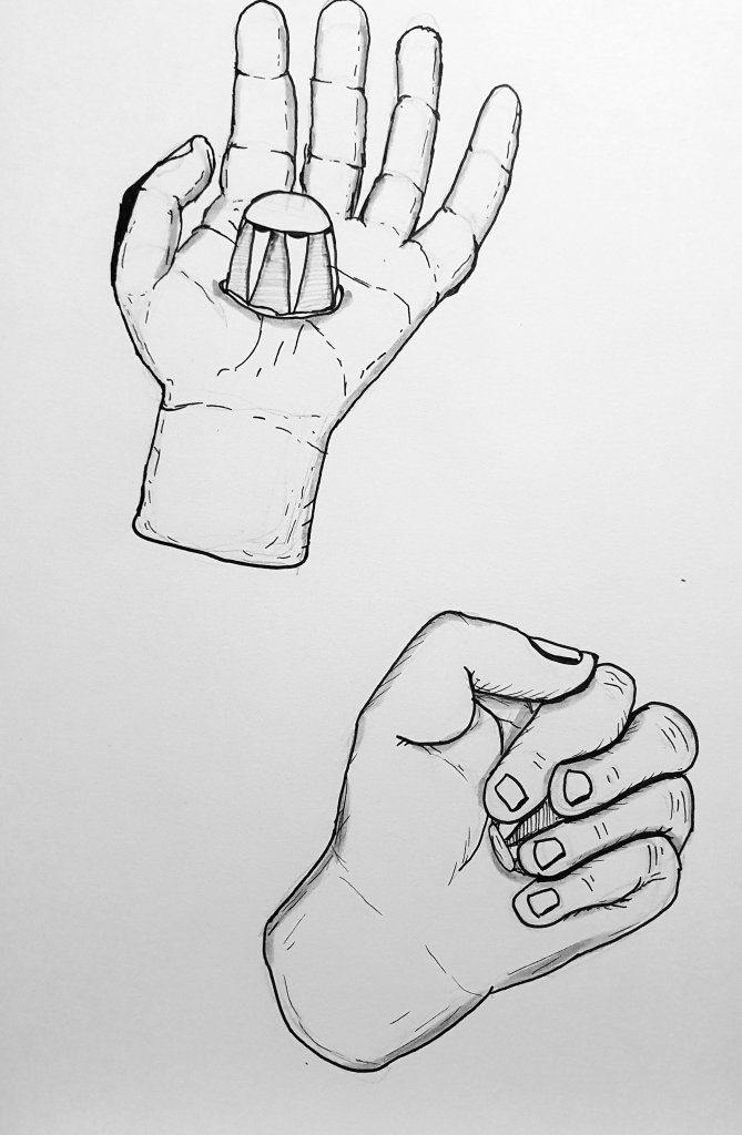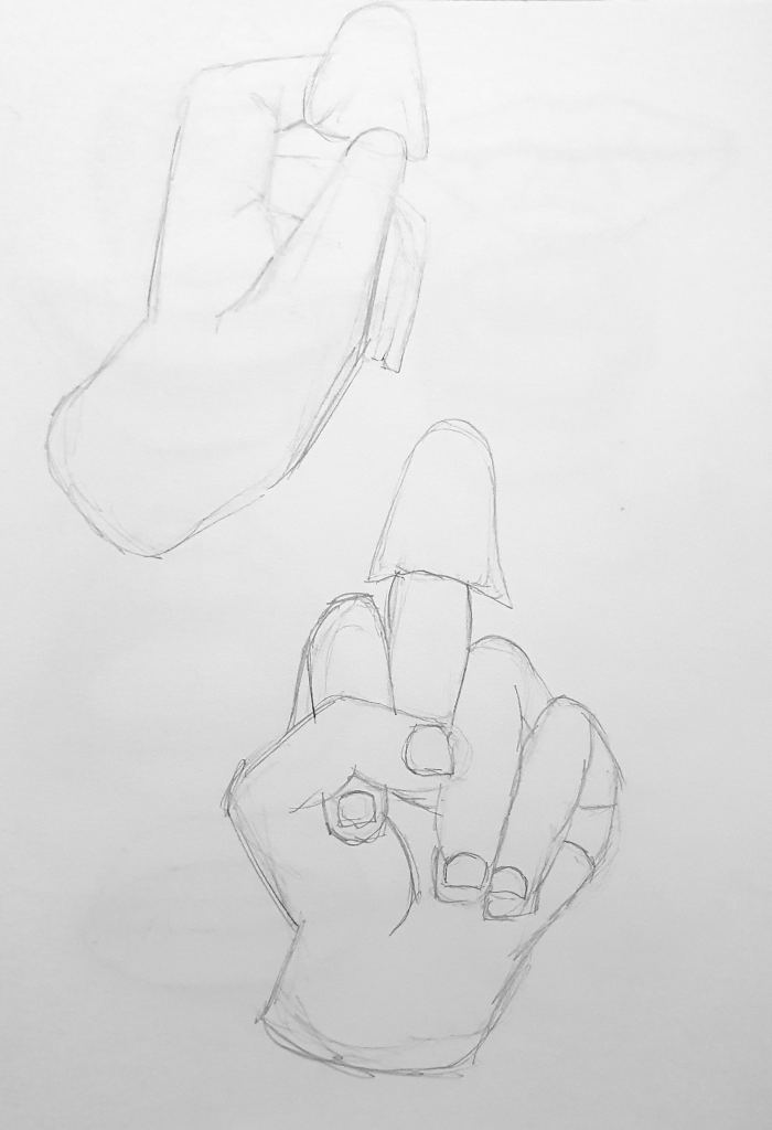 At this point in the project, I had already decided that the medium I wanted the story to be showcased was animation. I made this decision as I wanted the story to come to life and felt like animation would be the best method to do it, plus there is the added bonus of animation being a repetitive process of its own which added to the core values of maintaining repetition in my work. With that being said, I knew that there would be certain scenes with the focus being on hands holding the ghosts in different ways. That is why I decided to create some hand position studies where I held the cups the ghosts are made of so that I could both gain perspective on how the sizes of the ghosts compare to the scale of the hand and also allow me to practice drawing hands in general as they can be particularly difficult to draw.