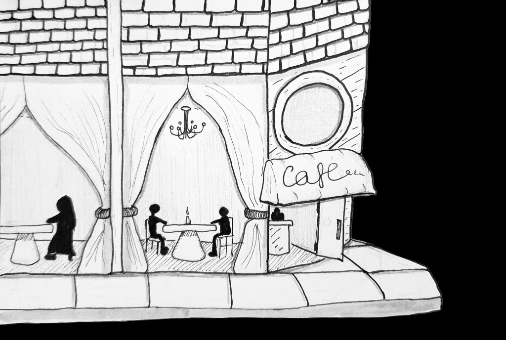As I have never really been a fan of sketching in sketchbooks mainly for the inability to move around the pages as I see fit, I went about my usual method of drawing on A5 cards to sketch out all of the elements. Rather than make a round of rough sketches and then a round of clean sketches, I decided to treat the initial drawings as tests that I could draw on top of if I deemed them worthy. That is why I tried to create as much depth and detail as I possibly could with a pencil before moving on to create more with pens. This also allowed me to perceive if certain scenes had to be split up for elements to be separated rather than be one whole conjoined setting. For example, the picture on the right was turned into 2 separate drawings as I wanted the dinner table with the characters to fade in after the kitchen was put into place. It also allowed me to change details that I felt better made sense for the story, like how I envisioned the protagonist to be younger at this stage of the flashback sequence so I changed them from sitting in a chair to having smaller proportions within a high chair.