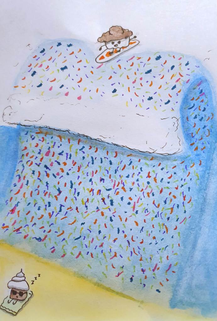 You know what, life is too short for long words. It’s the middle of the week, so you should treat yourself for doing your best! Take a load off, kick back and relax. Maybe chuck on a film you’ve been putting off watching or try a new cocktail cause why not!! I recommend a nice Tequila Sunrise to get a bit more bubble into your boogie, that and it’s fizzy which helps with today’s prompt. Cheers! 🍹