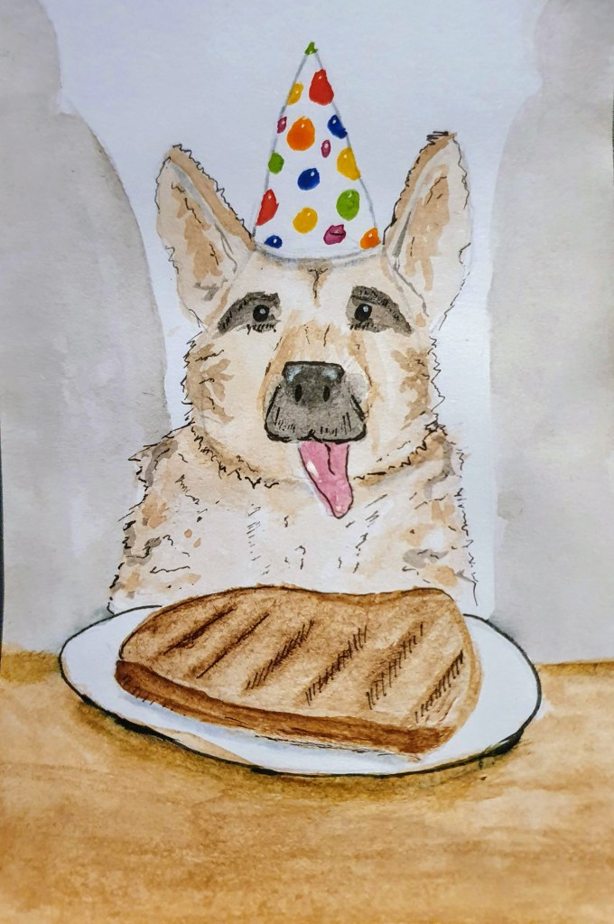 Meet Alfie the Alsatian! Today is their birthday so as a nice treat they are being spoiled with a whole steak! Their owners probably should’ve cut it up a bit before putting it in front of him though, cause by the looks of that face the bugger is gonna scarf it down without even enjoying the present. Oh well, as long as he’s happy and enjoying their special day, that’s all that matters.