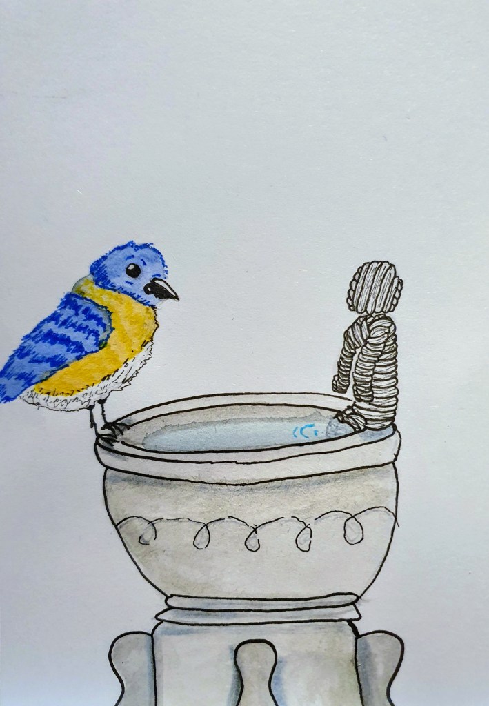 Taking a break is always a good thing to do when times get a little overwhelming. Thankfully, Steve was able to find a lovely spa nearby to take a few minutes to ponder whilst kicking their legs in the water. They even got visited by a lovely bluebird who didn’t mistake them for food and tried to eat him like most birds do. Just two friends enjoying the water before going their separate ways, can’t beat little moments like this.