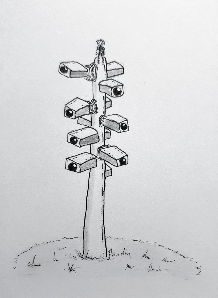 Most forests tend to have totems or lampposts as markers to help you get through them. However, this forest in particular is known for its giant pylon of cameras that was made by the local hermit who resides in these woods. Normal people tend to see it and think of it as an eyesore but hunters appreciate its value as the hermit keeps an eye on the monsters that roam through the trees, taking tally of what still lurks and what new creatures find their way. This information is then couriered to local taverns and weaponsmiths for bounties and maintaining a surplus of supplies that we may need. It tends to work most of the time but obviously, cameras do have blind spots but anything small enough to hide in them isn’t that dangerous.