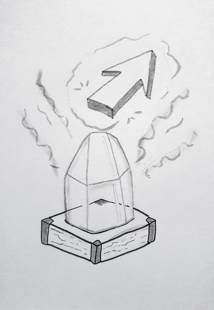 I don’t really use this piece of junk much nowadays but you’ll see a lot of newbies and tourists carrying them about. Some wizard years ago decided to place a beacon around the pumpkin plinth and sold these handy navigators to beginner hunters, helping them find their way through a vague, glowing arrow that would emanate from the crystal. Since most hunters now know the trail like the back of their hand, we tend to just use them as paperweights or as a fun memento thinking back to our first trip. I personally use it as a reading light.