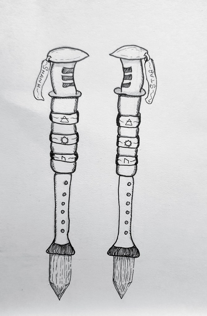 When packing light on long journeys, it is always the best feeling when you can kill two birds with one stone. Meet my beautiful twins Shank & Stab, a custom-built pair of trekking poles that have been modified to act as stakes with extra reach so they are both tools and weapons. They are also enchanted to help put an extra pep in my step, branded with varying runes that imbue me with extra strife and speed if I ever get tiresome. If I ever retire, I am definitely converting these babies into a walker so they can continue living with me rather than gathering dust in an old box somewhere.