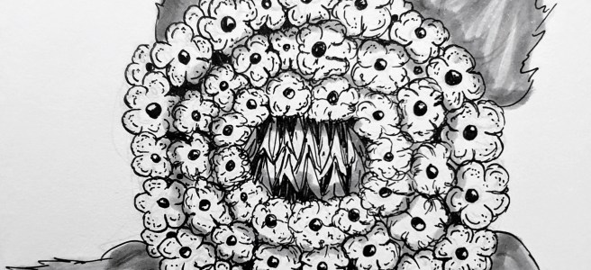 The artist branched off from their usual October drawing challenge to try something a bit more spooky, having fun with utilising colour to bring absurd halloween themed creations to life.